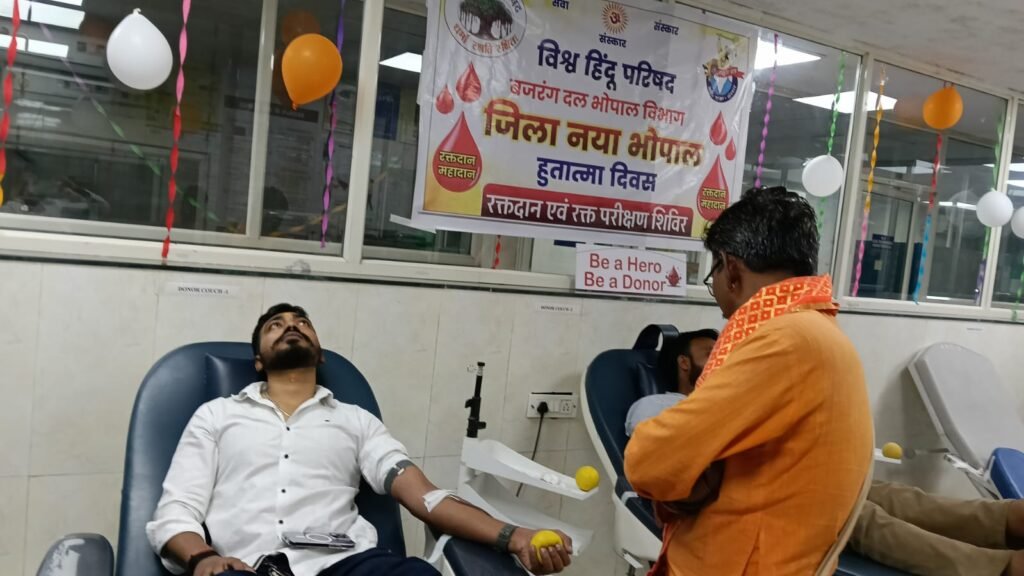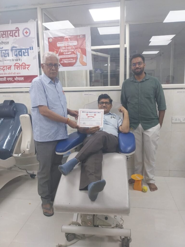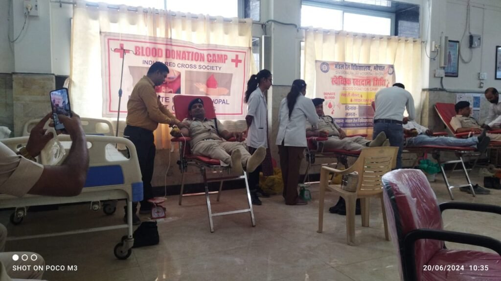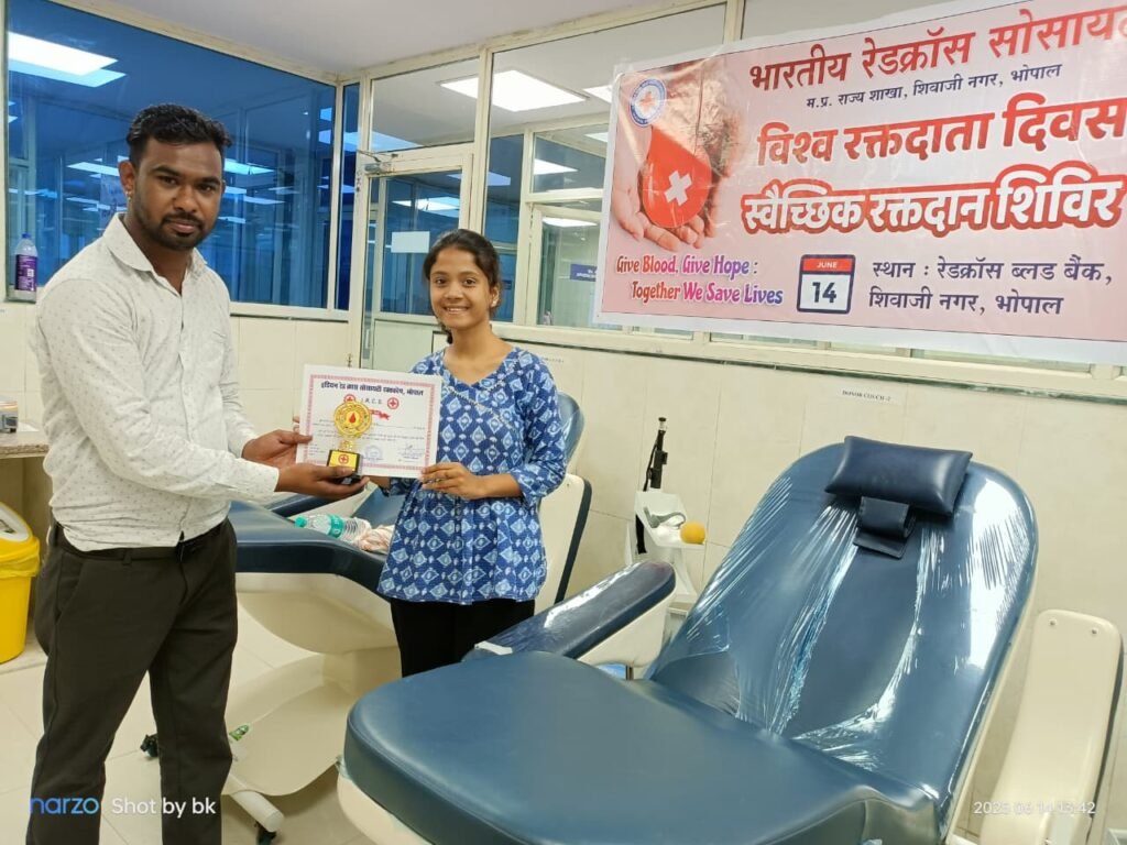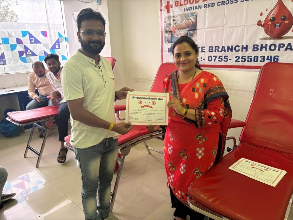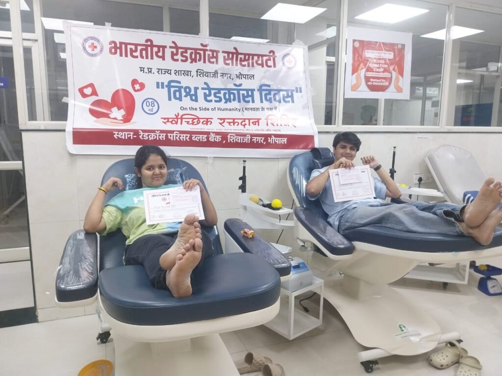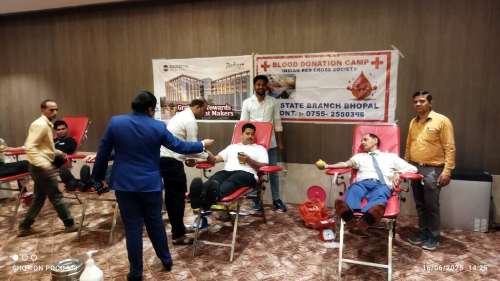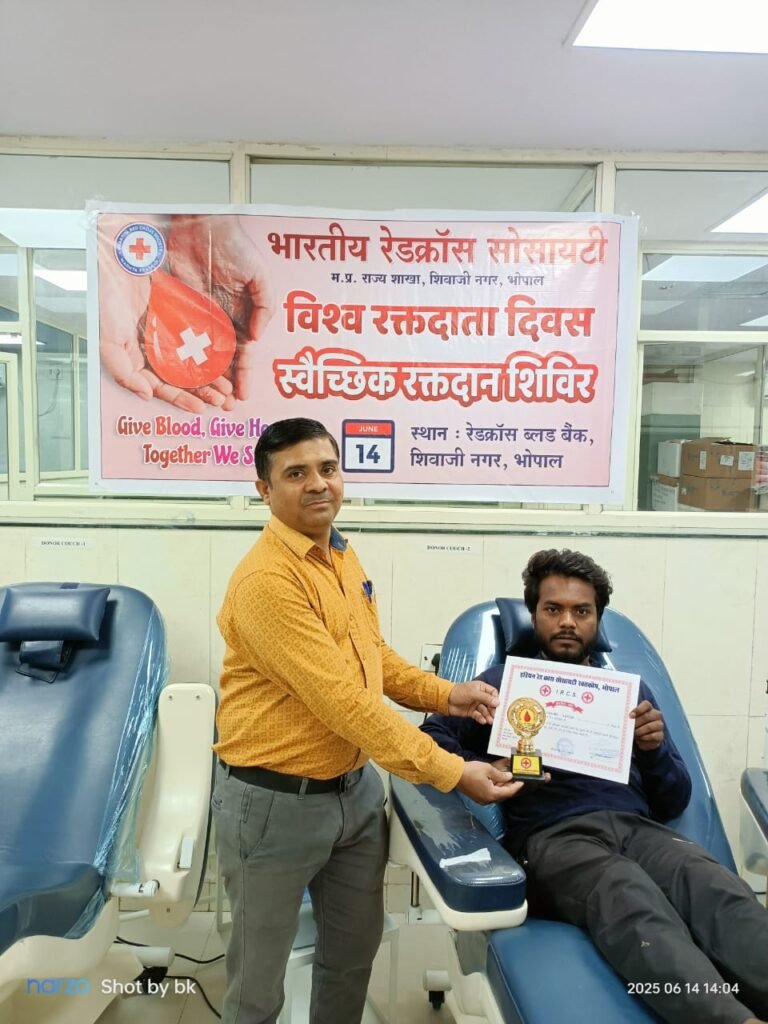Blood donation camp at Redcross Society Bhopal Branch on 14th June 2025