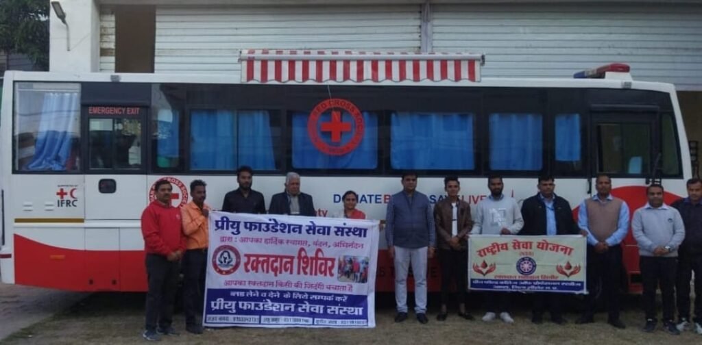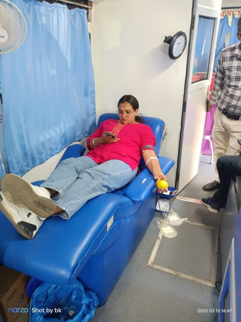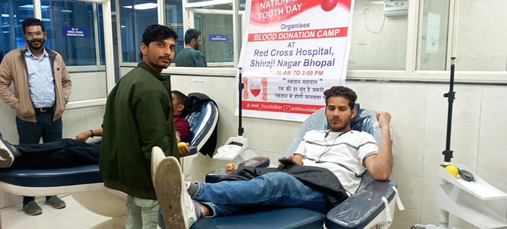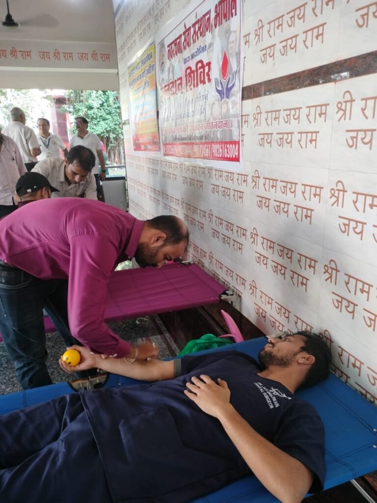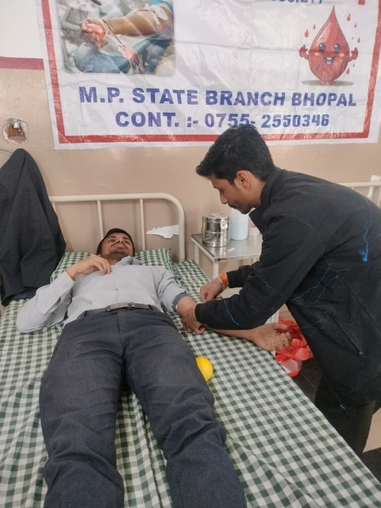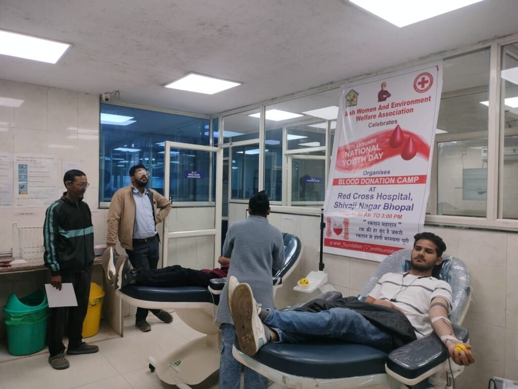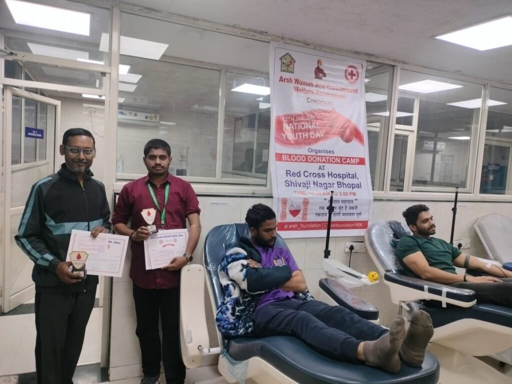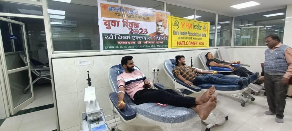 Blood donation camp organised on Youth Day at Youth Hostel Association of India, Bhojpur Unit, Mandideep