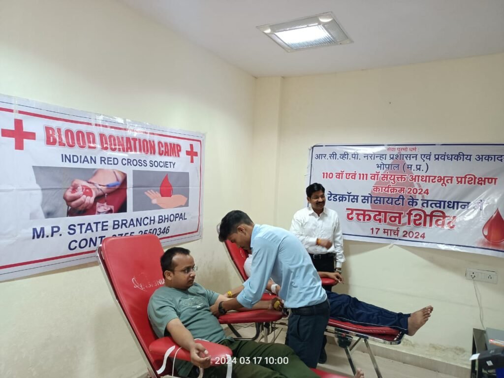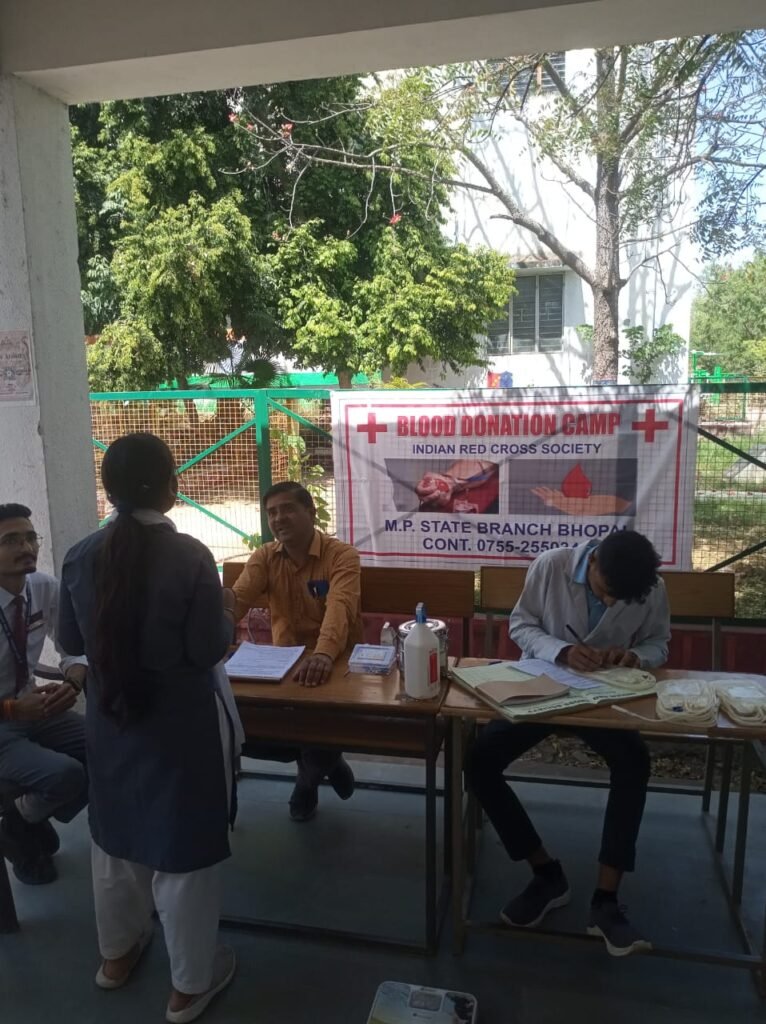 आज भारतीय रेड क्रॉस सोसायटी जिला शाखा भोपाल द्वारा राधा रमन कॉलेज में रक्त दान शिविर का आयोजन किया जिसमें संस्था के विद्यार्थियों ने काफी उत्साह पूर्वक रक्त दान किए, जिसमें रेड क्रॉस सोसाइटी की तरफ से श्री रमेश रावत जी उपस्थित रहे।